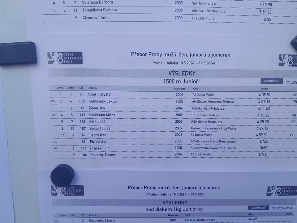Junior Jakub Koblovský zahájil sezónu 11. 5. 2024 na II. lize v Ústí nad Orlicí, kde si vylepšil osobák na 1500m na 4:11,13 a závod vyhrál. O víkendu 18.-19.5. se zúčastnil přeborů Prahy. V sobotu běžel 800m za 2:04,31 a v neděli si opět vylepšil osobák na 1500m na 4:07,15 skončil na druhém místě.