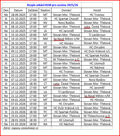 Hokejový oddíl Slovan Moravská Třebová zahájí Krajskou ligu mužů Královéhradeckého a Pardubického kraje domácím utkáním v neděli 28.9.2025 v 17:00 hod. Vstupné zůstává 70 Kč, zlevněné 50 …