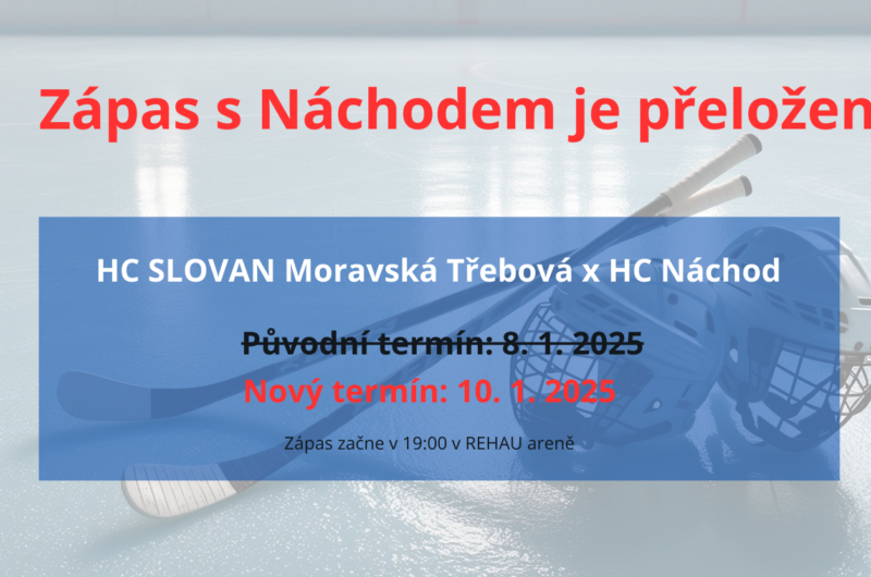 HC Slovan Moravská Třebová x HC Hlinsko 2:8 (0:5, 2:2, 0:1) Sestava Slovanu: Milan Ryšavý, Pavel Řoutil (v bráně od 35. minuty), Jakub Schejbal, Ondřej …