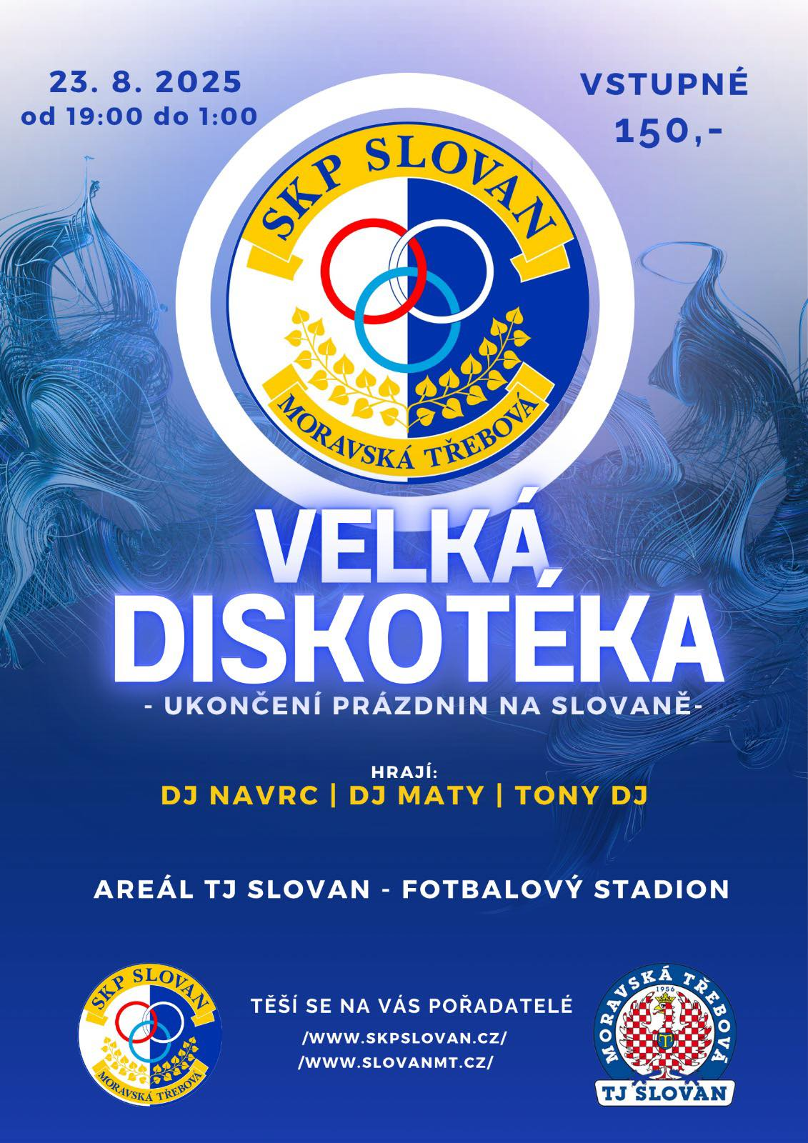 V sobotu 23. 8. 2025 se znovu po roce rozezní v areálu TJ Slovan na fotbalovém hřišti rozezní hudba. Přijďte si užít venkovní párty.