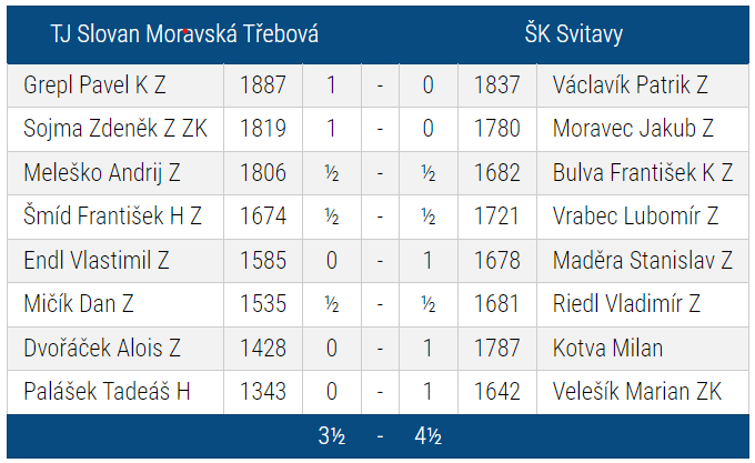 V druhém zápase v Krajského přeboru družstev jsme doma přivítali tradičního rivala, hosty ze Svitav. Po loňské vysoké prohře (5,5 : 2,5) se nám letos …