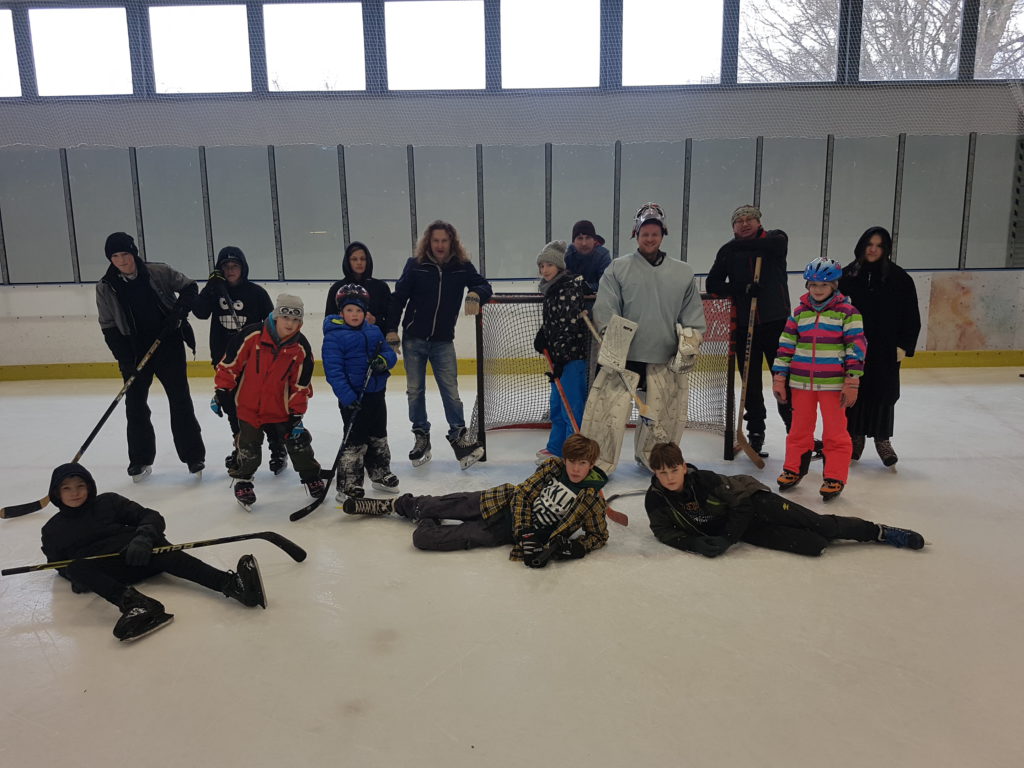 Hned druhý den po Ledové Praze jsme si v neděli protáhli kosti na bruslení s Čochtanem. Děti i s některými rodiči si zabruslili, nechyběly hokejky, vyzkoušeli si nájezdy a střelbu na brankáře v plné výzbroji a někteří si zahráli hokej.
