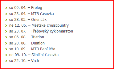 aktualizováno 7. 2. 20227. 2. 2022Cyklistika Cykloman zná termíny závodů Vendula Bečvářová Termíny jsou předběžné a můžou se ještě měnit. Info: Termíny Cykloman 2022 – Cykloman – cyklistika – Moravská Třebová