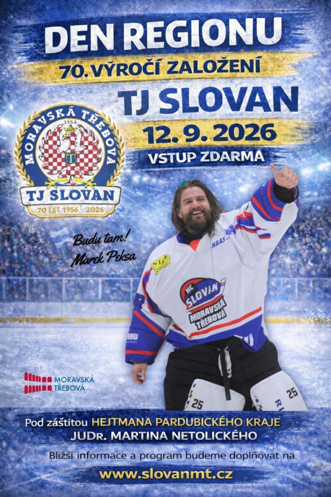 TJ Slovan Moravská Třebová letos slaví významné jubileum – 70 let od svého založení. Hlavní oslavy proběhnou v sobotu 12. září 2026.