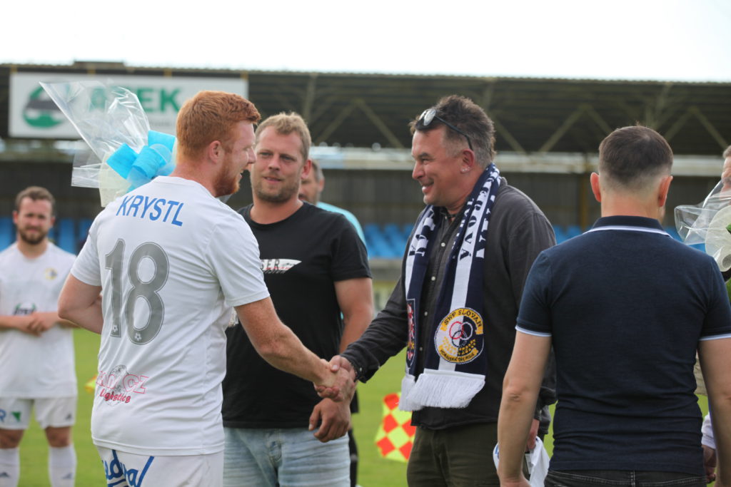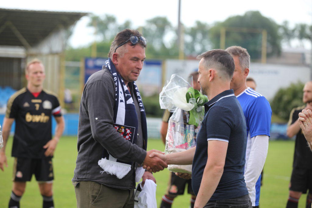 Na hřišti mu za jeho služby pro oddíl poděkovali členové SKP v čele s novým předsedou Michalem Jurníčkem a předseda TJ Slovan Ladislav Weinlich.