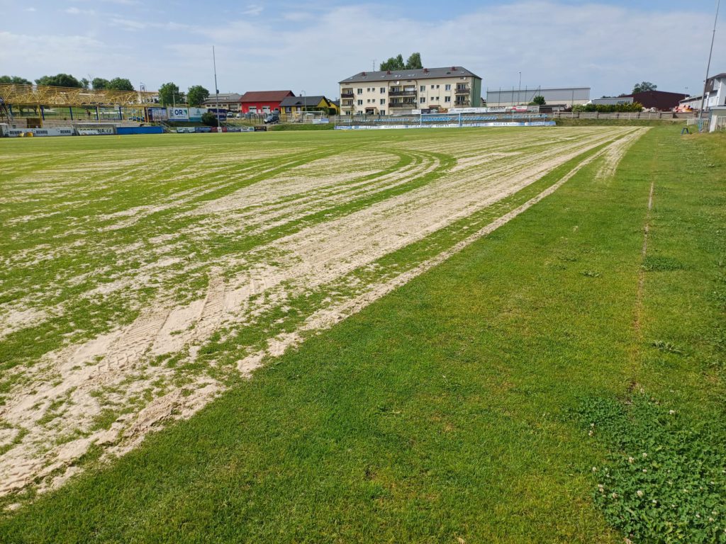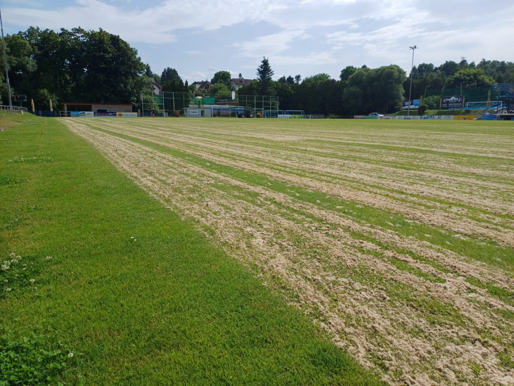 Letní přestávka ve fotbalových soutěžích přinesla na stadion TJ Slovan Moravská Třebová nejen klid od zápasového ruchu, ale i ideální čas pro údržbu sportovišť. Na hlavní travnaté ploše aktuálně probíhá plánovaná regenerace, která má za cíl připravit hřiště na novou sezónu.
