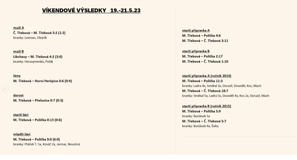 Úvodní stránka Aktuality Fotbal Fotbalové výsledky 19. – 21. 5. 2023