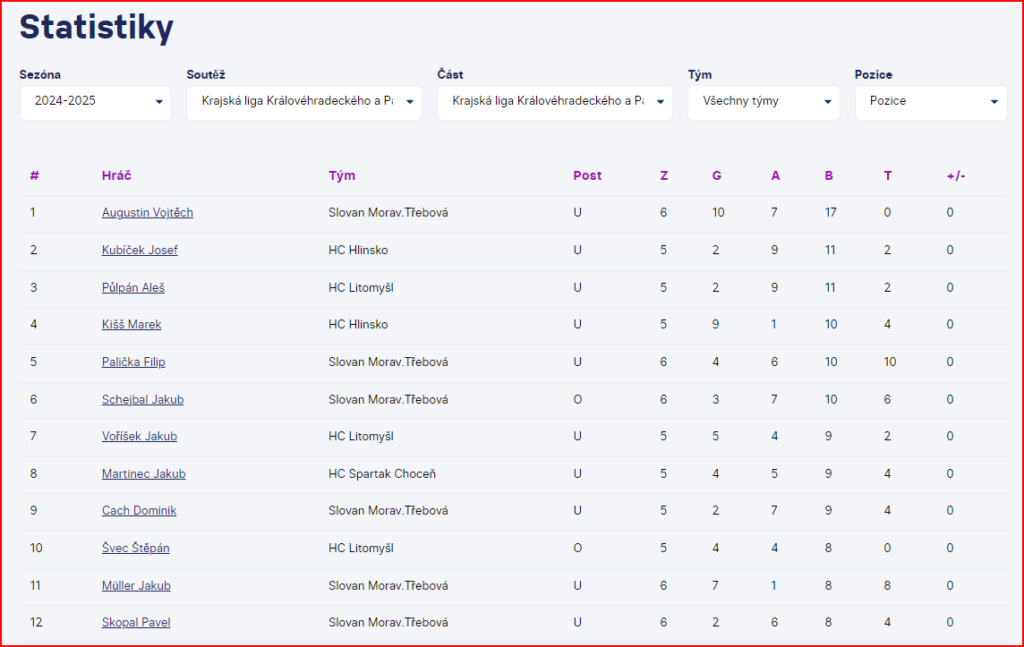 Statistka nejlepších hráčů: