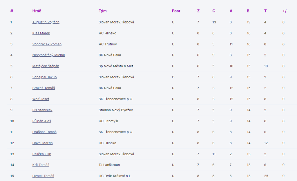 Statistika hráčů: