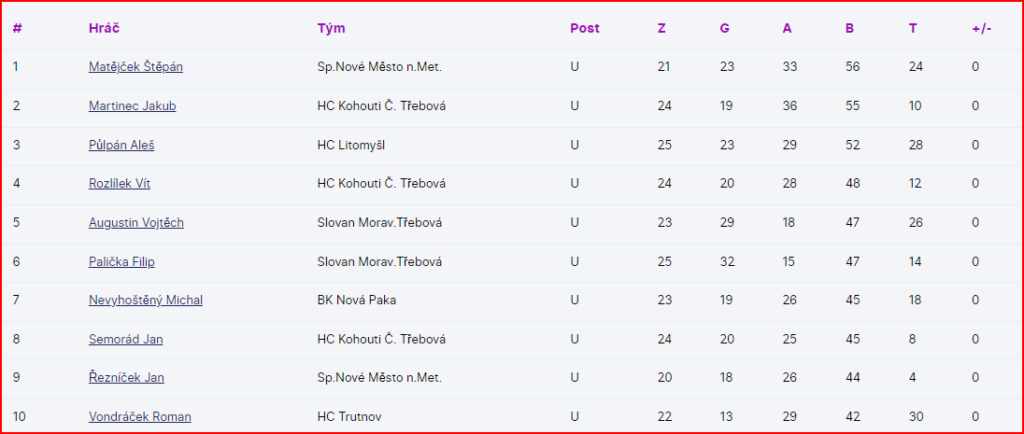 Statistika hráčů: