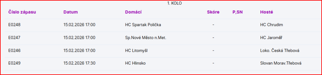 Série odstartuje v neděli 15. února 2026 na ledě Hlinska. Domácím fanouškům se naši hráči představí ve středu 18. února 2026. Třetí utkání je na programu opět venku, a to v neděli 22. února 2026.