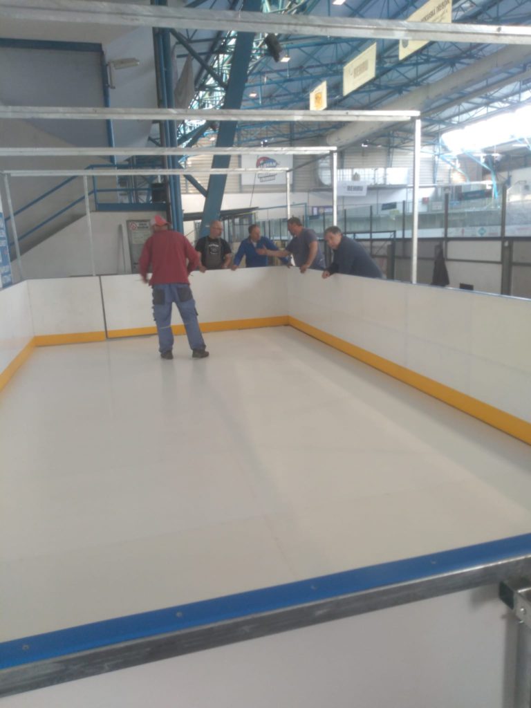 Na zimním stadionu minulý týden „vyrostla“ nová tréninková střelnice pro hokejový oddíl. Zajímavostí je, že tuto střelnici stavělo nejvyšší vedení klubu – Kamil Přecechtěl, Libor Cach, Dalibor Chlup, Josef Haas a Jaromír Parolek.
