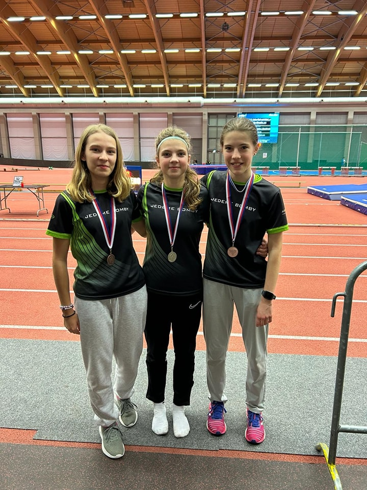 Matyáš Zvára běžel 60m za 8,06, 150m za 20,89 a 300m za 44,89. Jolča Krejčí běžela 60m za 9,34, 800m za 2:43,58 a koulí vrhla 7,25. Áďa Friedlová běžela 60m za 9,05 a v kouli postoupila do finále výkonem 9,05. Nikča Smolíková byla ještě čtvrtá v běhu na 150m výkonem 21,60. Majda Krejčí skočila ve skoku vysokém 136cm. A Verča Pávková hodila koulí 7,98. Moc moc všem gratulujeme za skvělé výkony a reprezentaci oddílu.