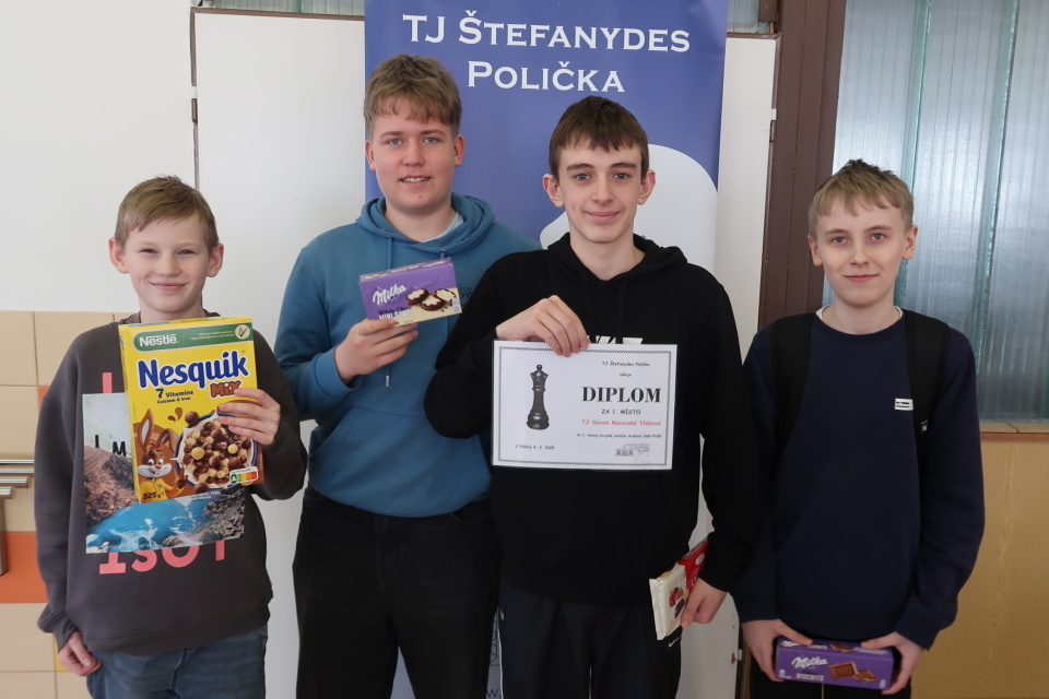 V Poličce 8. března se odehrál druhý turnaj Krajské soutěže čtyřčlenných družstev mládeže. Zúčastnilo se ho celkem třináct družstev z Pardubického kraje. Náš tým nastoupil ve stejné sestavě jako v prvním turnaji: Vojtěch Šmehlík, Daniel Polák, Matyáš Daul a Ondřej Šesták. A kluci hráli opět výborně a s přehledem zvítězili.