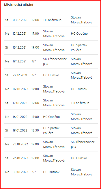Úvodní stránka Aktuality Lední hokej Rozpis zápasů mužů A
