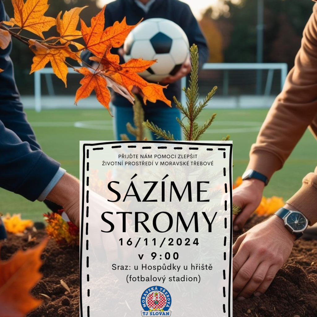 V sobotu 16.11. 2024 proběhne v areálu fotbalového hřiště  akce „Sázíme stromy“. Slovan byl úspěšný s žádostí v dotačním programu společnosti Tipsport a získal 170 000,- korun na zlepšení stavu zeleně na sportovištích. Díky tomu vysázíme v areálu více než 40 stromů a 230 keřů. Všichni, kteří mají zájem zlepšovat životní prostředí v Moravské Třebové a chtěli by se na sázení podílet, jsou srdečně zváni.