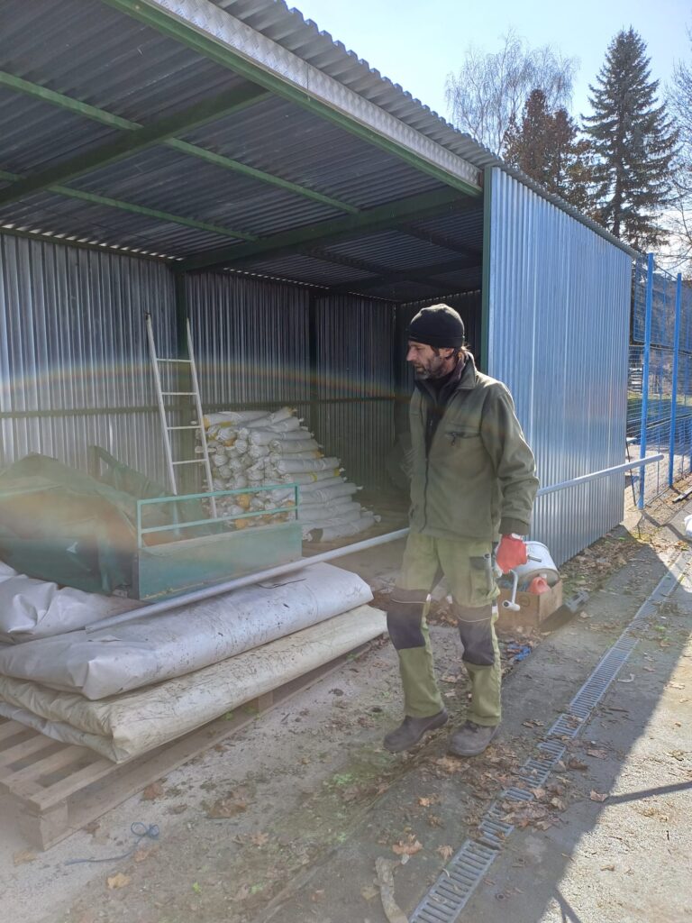 O víkendu členové tenisového oddílu vlastními silami, pod odborným dohledem, demontovali a uskladnili nafukovací tenisovou halu.