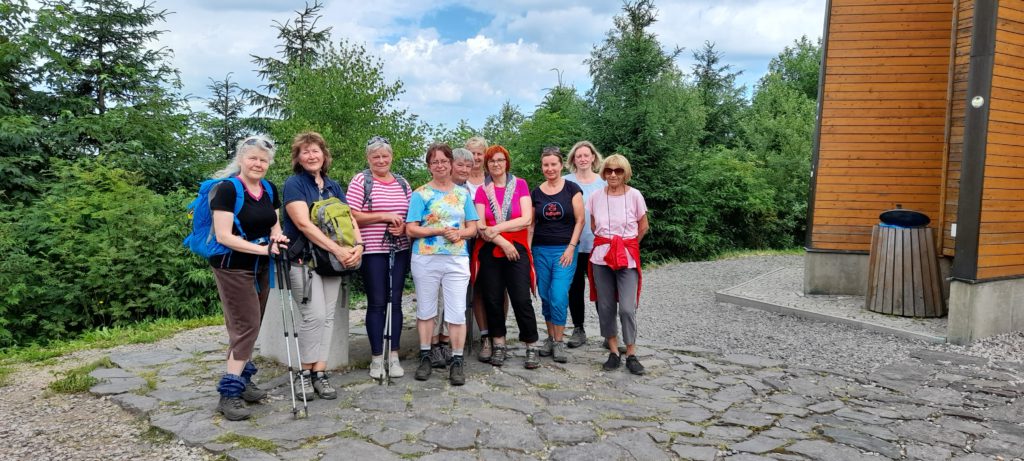 Pěší parta, převážně dámská, se vydala k prameni Tiché Orlice a dále  přes Horní Orlici po Hřebenovce na rozhlednu Val. Následoval Hedeč a poutní místo Hora Matky Boží se známým klášterem a kostelem Nanebevzetí Panny Marie. Po prohlídce areálu zbývalo sejít kolem kapliček do Králík, kde téměř po 18 km turistky svoje putování ukončily. Domů se v pohodě vrátily opět cyklobusem.