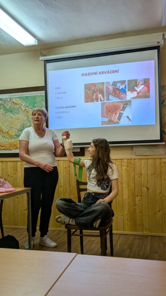 Proběhla tříhodinová přednáška první pomoci s paní Kantúrkovou, kde si účastníci mohli vše nejen vyslechnout, ale hlavně i prakticky vyzkoušet.