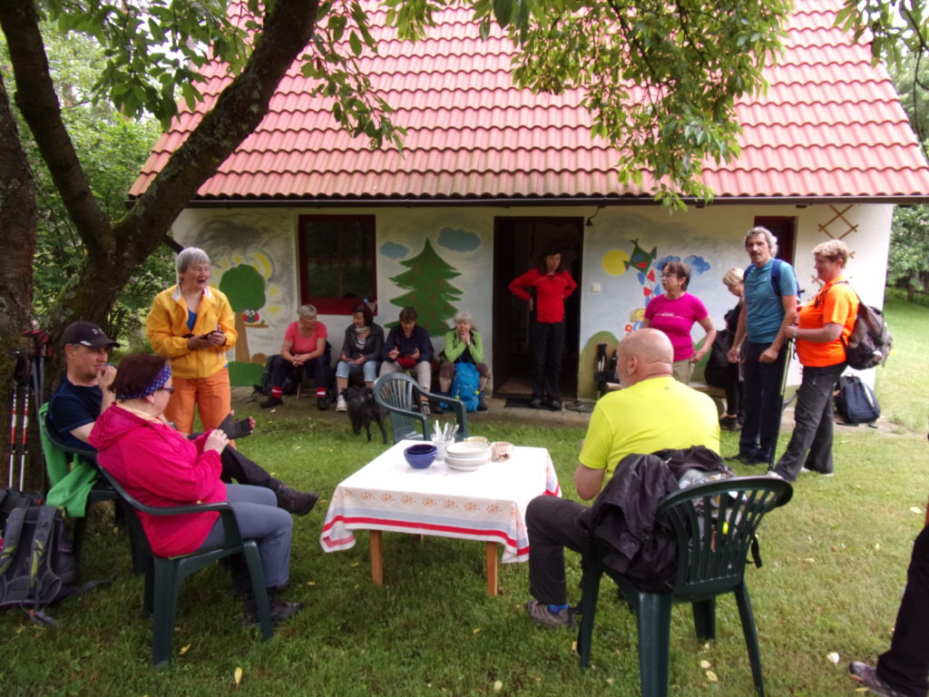 Ráno jsme využili cyklobusu a dojeli s ním do Proseče. Zde nás přivítal déšť ale nebyl nijak silný a naštěstí brzy ustal a po zbytek dne nám už počasí přálo. Z Proseče po modré turistické značce jsme došli na Hrnčířovu skálu, kolem Františkovi mohyly a Oslí chodby na nás čekali úzké průchody Toulovcových Maštalí. Potom jsme pokračovali na rozcestí Pod Džberkou a po druhé straně Vranického údolí zpátky na rozcestí Za Borky a kolem skalních útvarů Tribuny a Petrovny se nám již blížil cíl naší cesty a to byl Bor u Skutče. Celý den nám dělali průvodce známí ze Třebové, kteří navíc mají v Boru chalupu a hezkou zahradu, na které se za sluníčka krásně posedělo, pojedlo a popilo až do odjezdu cyklobusu, kterým jsme v pohodě a s mnoha zážitky dojeli domů.