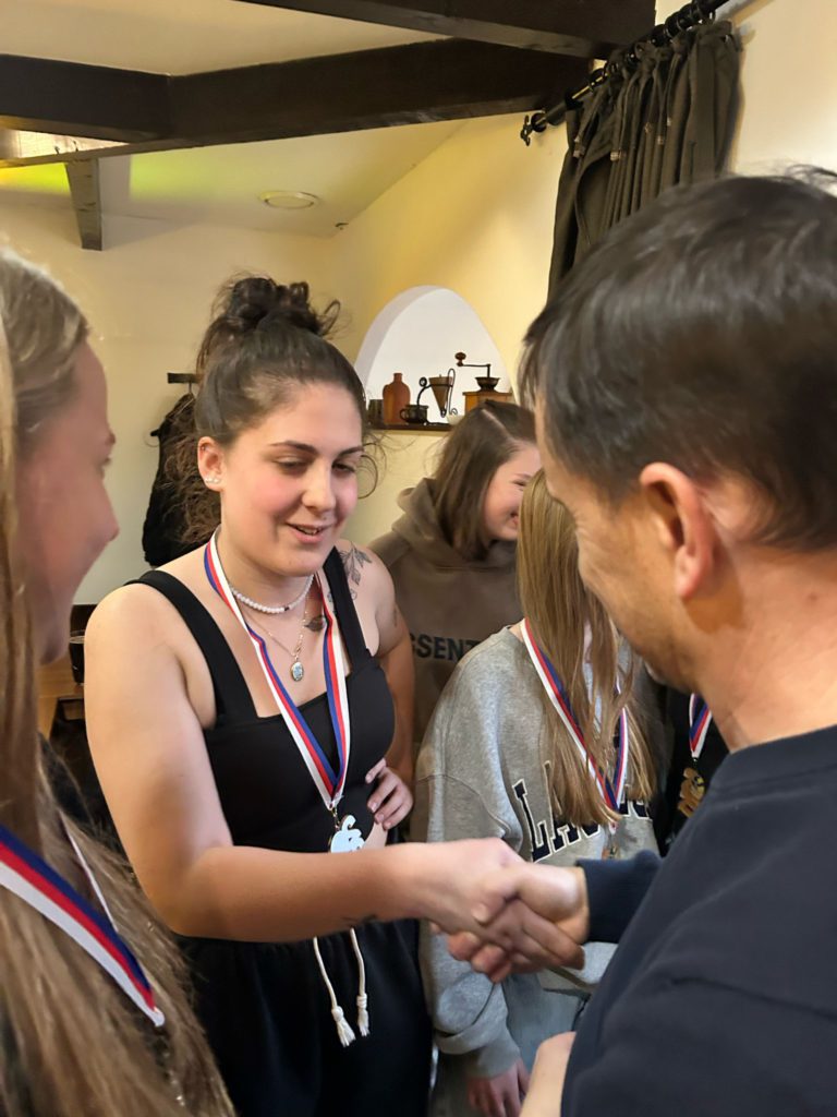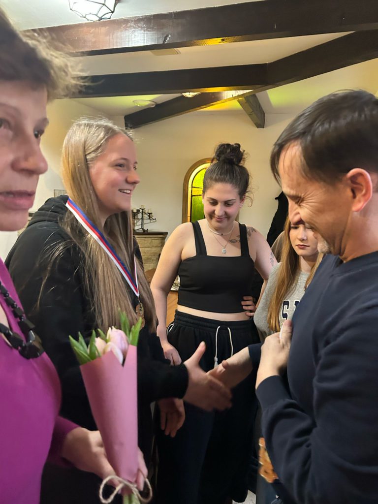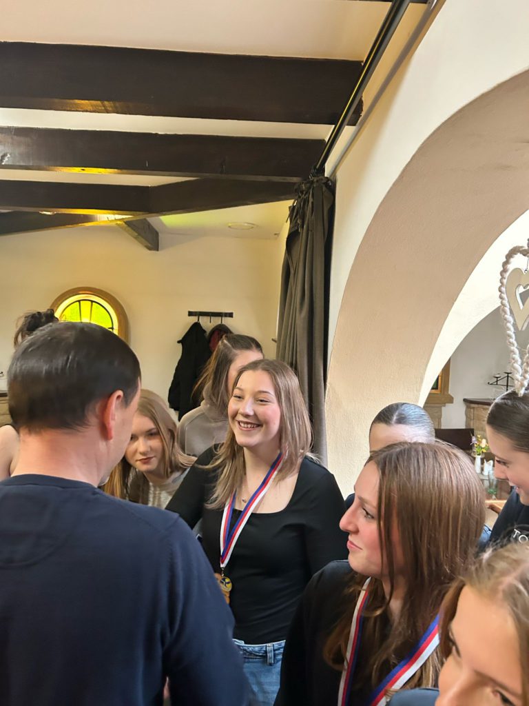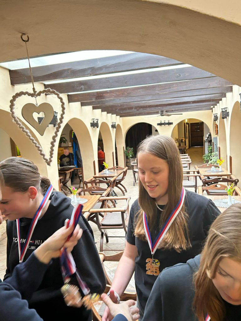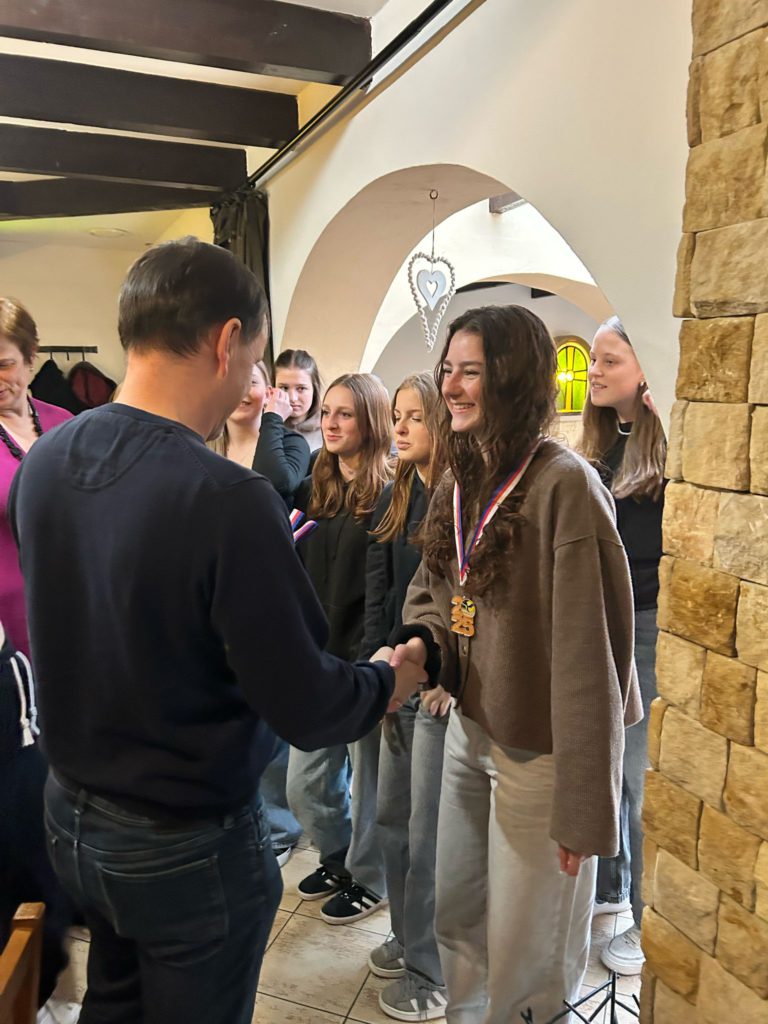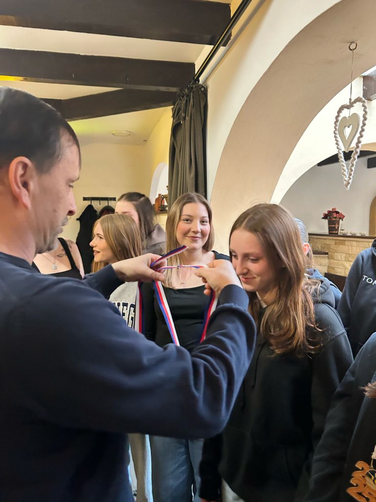 Volejbalistky převzaly z rukou předsedy TJ Slovan Ladislava Weinlicha a trenérky Hany Vávrové ocenění za 3. místo v přeboru pardubického kraje kategorie U20.