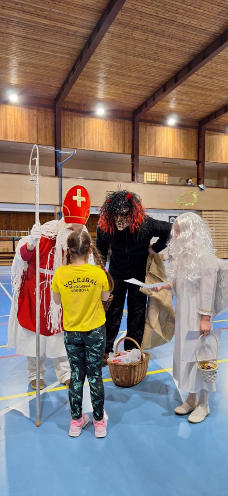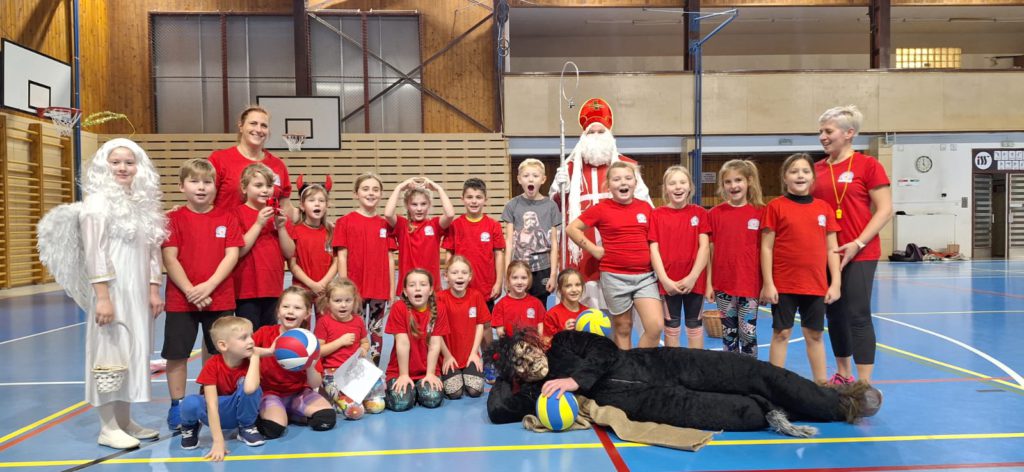 Nejmladší volejbalistky a volejbalisty čekalo na závěr čtvrtečního tréninku překvapení. Přišel je navštívit samotný Mikuláš se svým andělským i čertovským doprovodem. Děti od něj dostaly balíčky plné sladkostí a radostí.