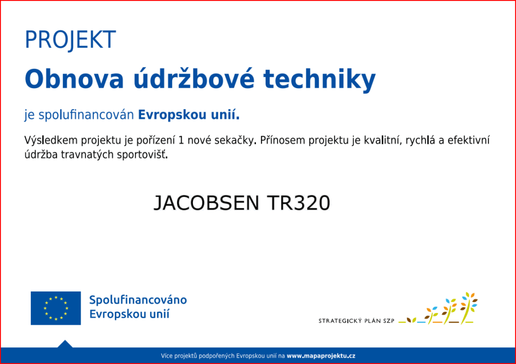 Tentokrát nejde o talentovaného sportovce, ale o nový údržbový stroj, který významně zlepší péči o naše sportoviště. Díky financím z dotace programu SZIF, kterou nám pomohla zajistit MAS Moravskotřebovsko a Jevíčko, podpoře z rozpočtu města a vlastním úsporám TJ Slovan, jsme pořídili novou vřetenovou sekačku Jacobsen TR 320. Ta nahradila svou dlouholetou předchůdkyni stejné značky.