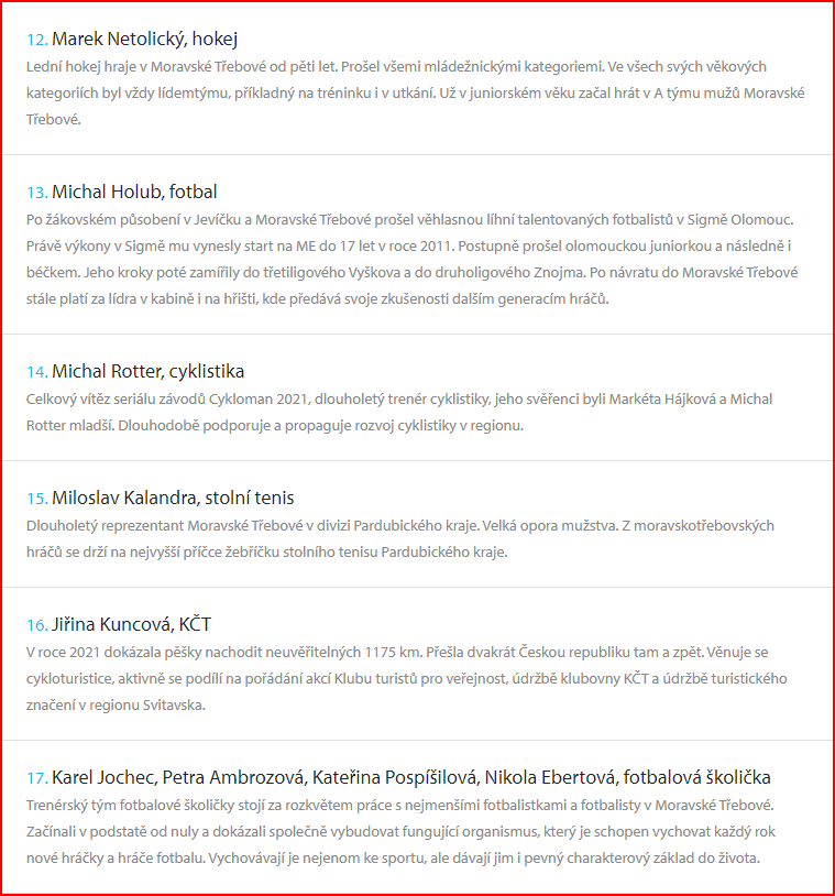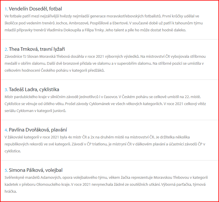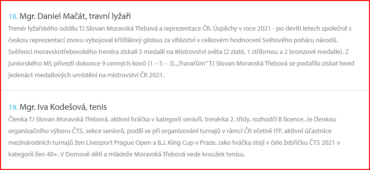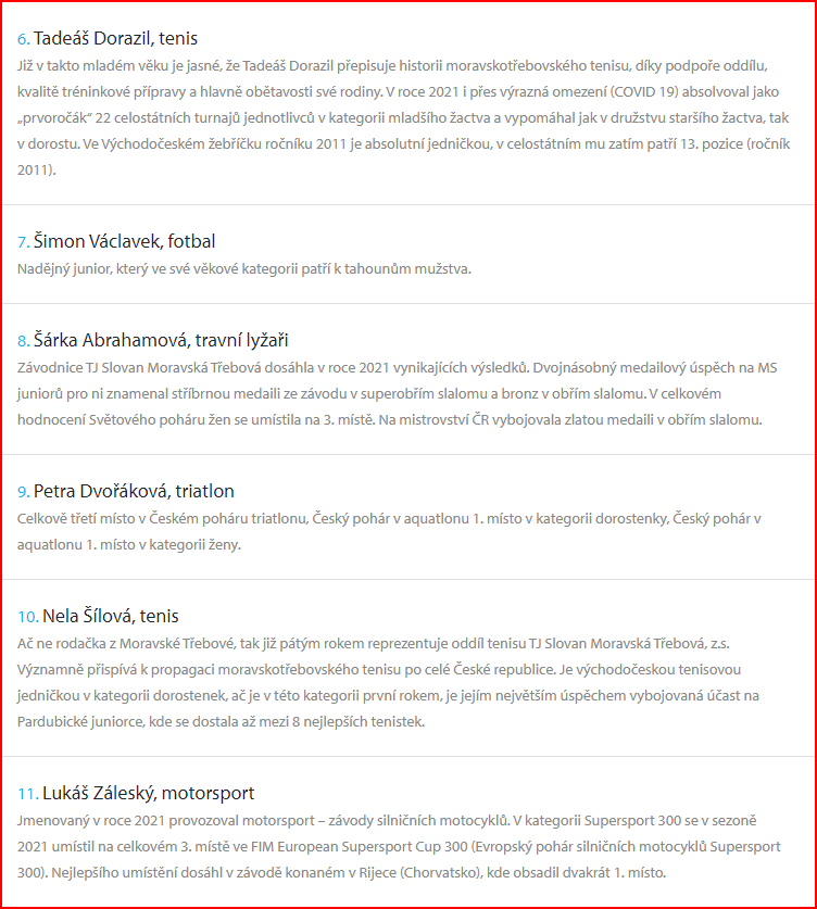 aktualizováno 1. 4. 20221. 4. 2022Nezařazené Začalo hlasování v anketě SPORTOVEC ROKU 2021 Vendula Bečvářová Hlasovat můžete zde: Anketa – SPORTOVEC ROKU MĚSTA MORAVSKÁ TŘEBOVÁ 2021 | Munipolis Nominace: