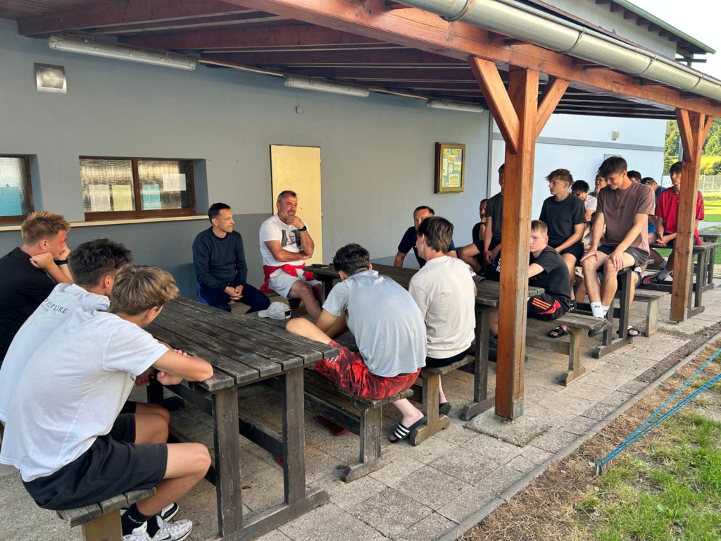 Večer pak Jarda Blažek zamířil do Městečka Trnávka, kde právě probíhá náročné soustředění našeho dorostu. Kluci zde makají naplno – kondiční i herní příprava jim dává pořádně zabrat. Jarda Blažek je však ujistil, že dřina k letní přípravě neodmyslitelně patří a že tvrdá práce se vždycky vyplatí. V uvolněné atmosféře se naši dorostenci dozvěděli i zajímavosti ze zákulisí vrcholového fotbalu a měli jedinečnou příležitost promluvit si s někým, kdo ví, co všechno cesta na vrchol obnáší.