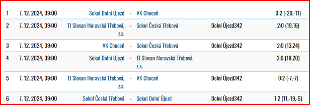 O víkendu 7.-8. 12. 2024 se představila hned tři moravskotřebovská družstva. Kadetky v sobotu hostily Pardubičky, mladší žákyně vyrazily do Dolního Újezdu a starší žákyně v neděli do Chocně.